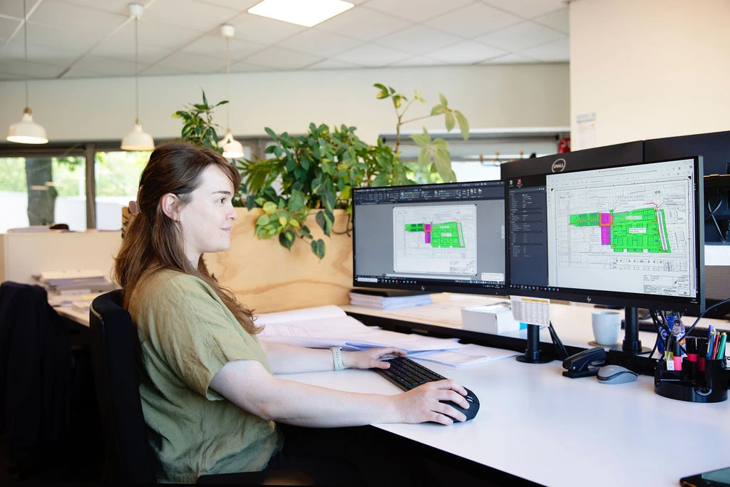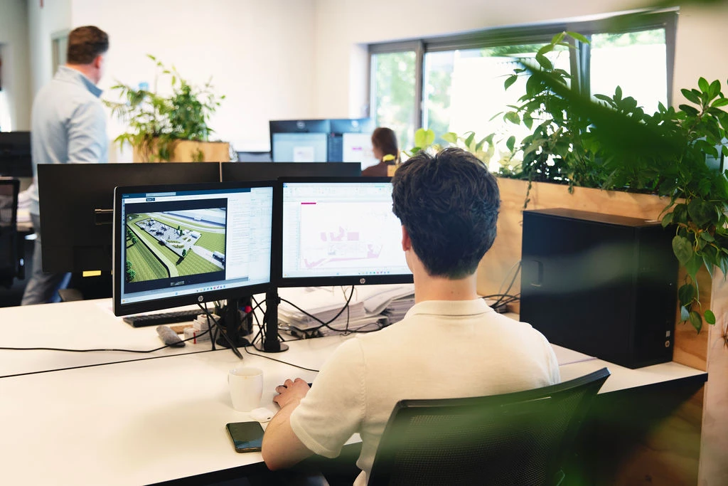 De werkplekken zijn ingericht op hoe we vandaag werken: ruimte voor concentratie, voor samenwerking en voor ontmoeting. Flexibel waar het kan, functioneel waar het nodig is.